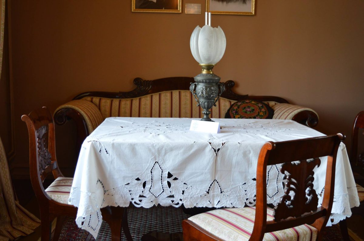 Īpašais notikums: Svinīga tējas dzeršana Ziemas dārzā pie klāta balta galda.