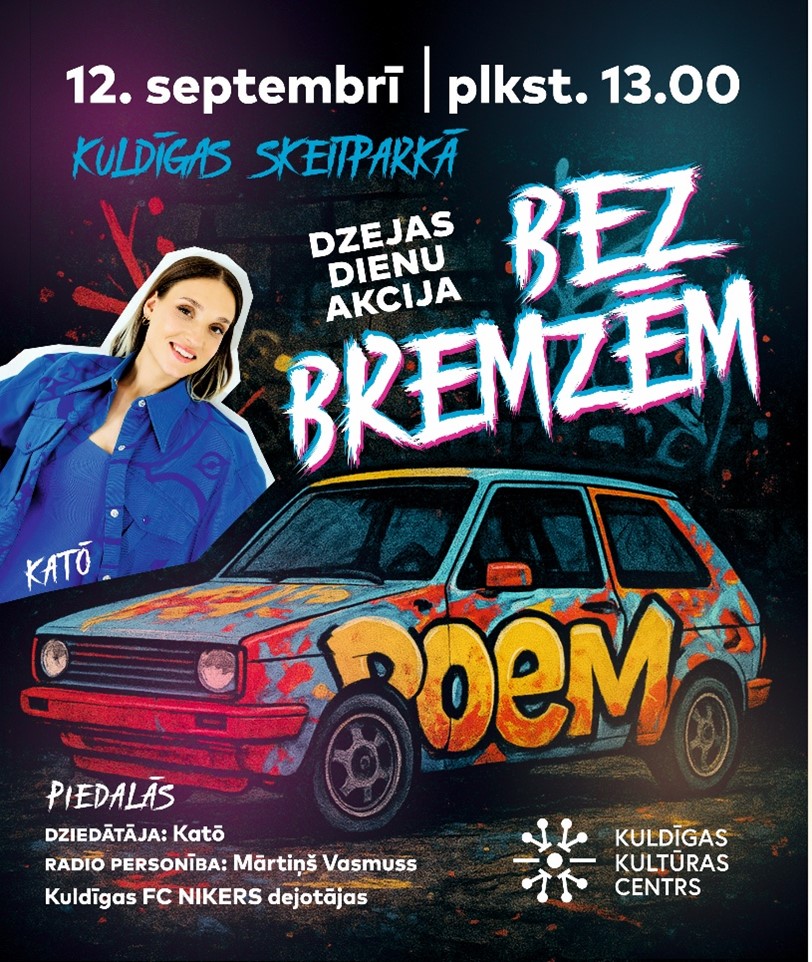 12. septembrī plkst. 13.00 Kuldīgas skeitparkā, ekstrēmo sporta rampu ielokā, notiks dzejas dienas akcija “Bez bremzēm”.