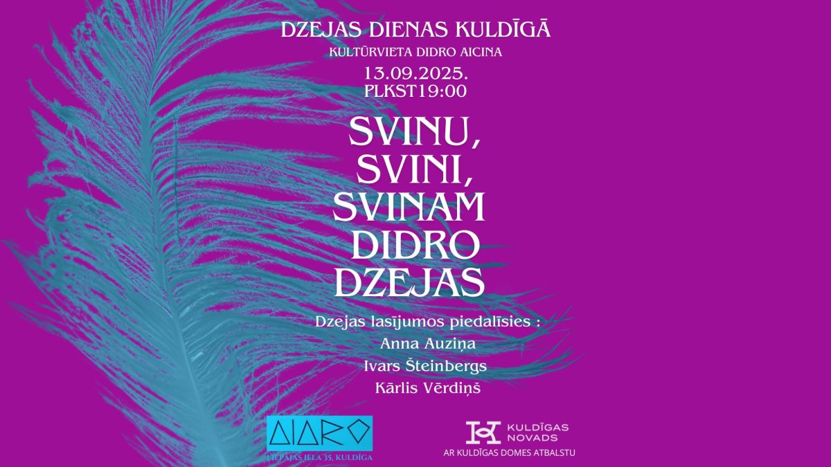 Dzejas dienu pasākums “Svinu, svini, svinam Didro dzejas, kurā piedalīsies Anna Auzina, Ivars Šteinbergs un Kārlis Vērdiņš
