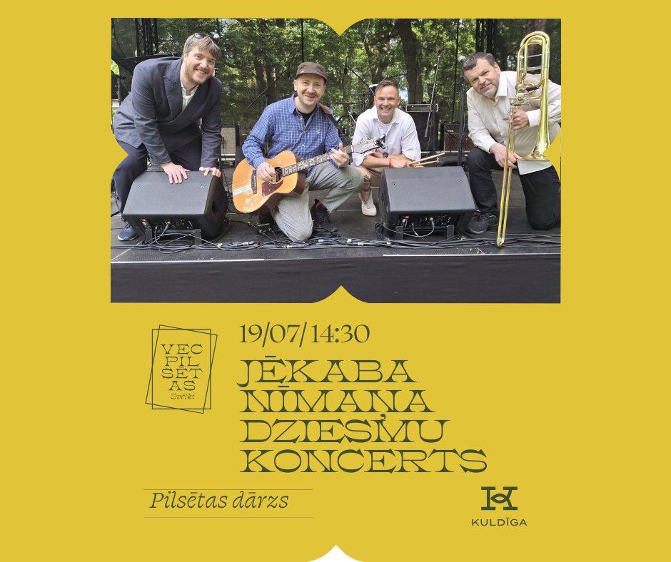 Sestdien, 19. jūlijā, plkst. 14:30 Kuldīgas Pilsētas dārzā – Jēkaba Nīmaņa dziesmu koncerts bērniem un vecākiem.