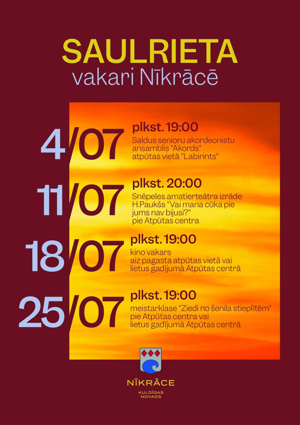 18. jūlijā 19.00 atpūtas vietā “Labirints” – kino vakars. Lietus gadījumā pasākums notiks Atpūtas centrā.