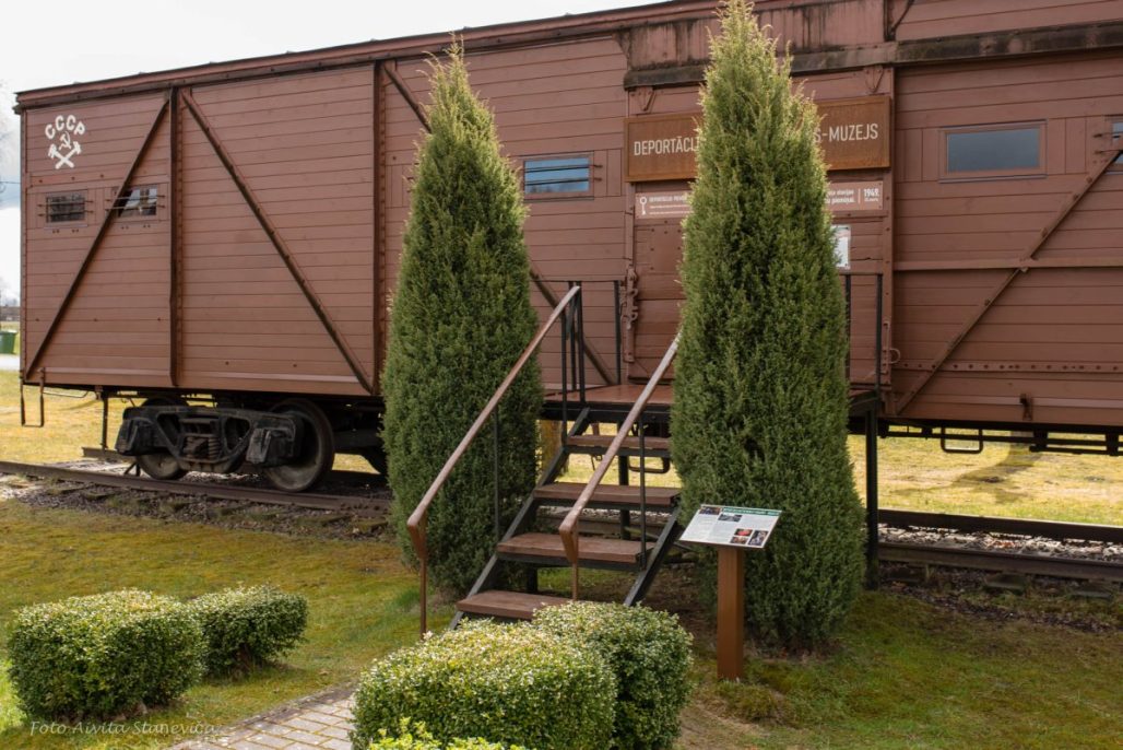 Skrundas dzelzceļa stacijā pie piemiņas vagona