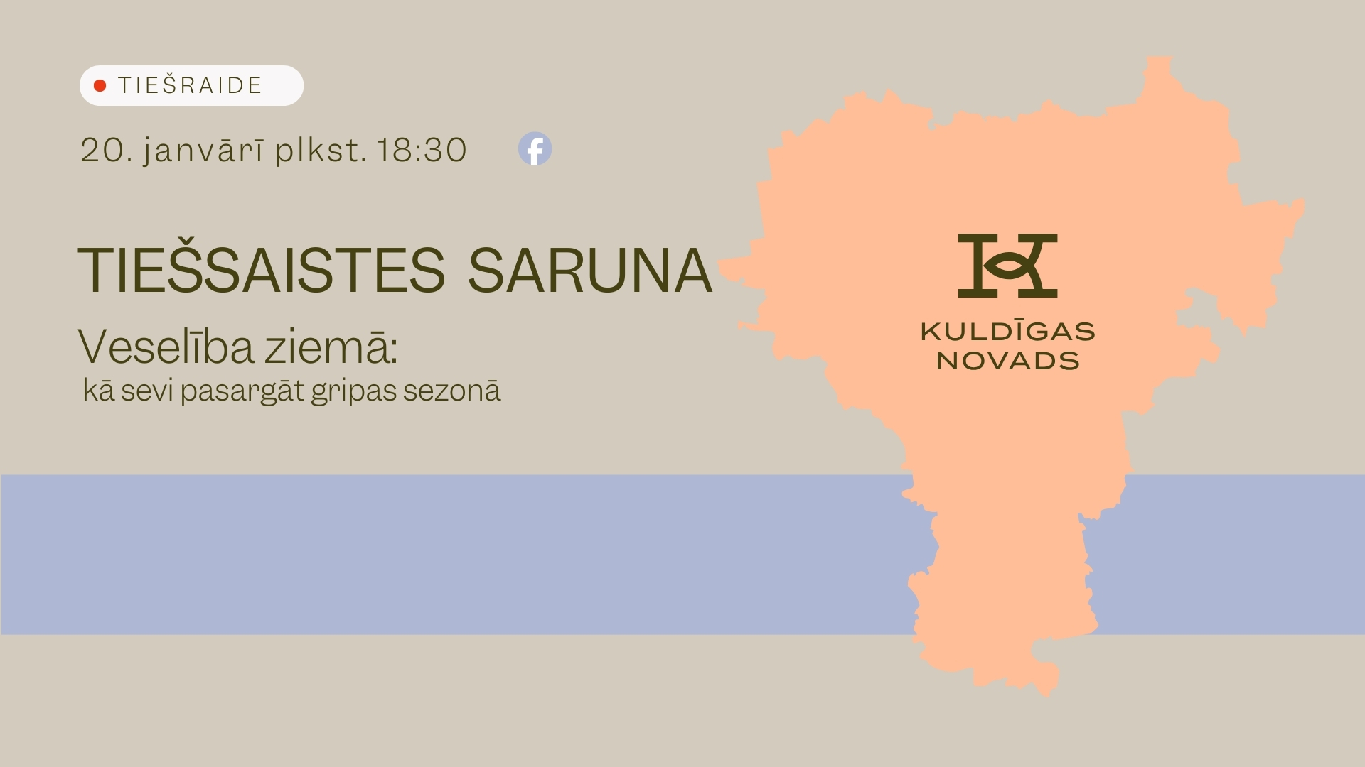 Otrdien, 20. janvārī, plkst. 18.30 aicinām iedzīvotājus pieslēgties tiešsaistes sarunai Kuldīgas novada pašvaldības Facebook lapā. Šoreiz runāsim par veselības stiprināšanu ziemas un gripas sezonā, praktiskiem profilakses soļiem ikdienā, kā arī par jaunā Kuldīgas doktorāta sniegtajiem pakalpojumiem.